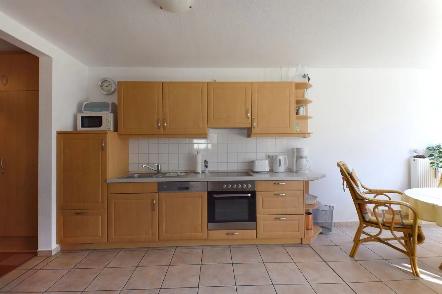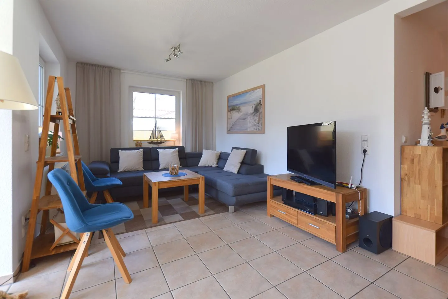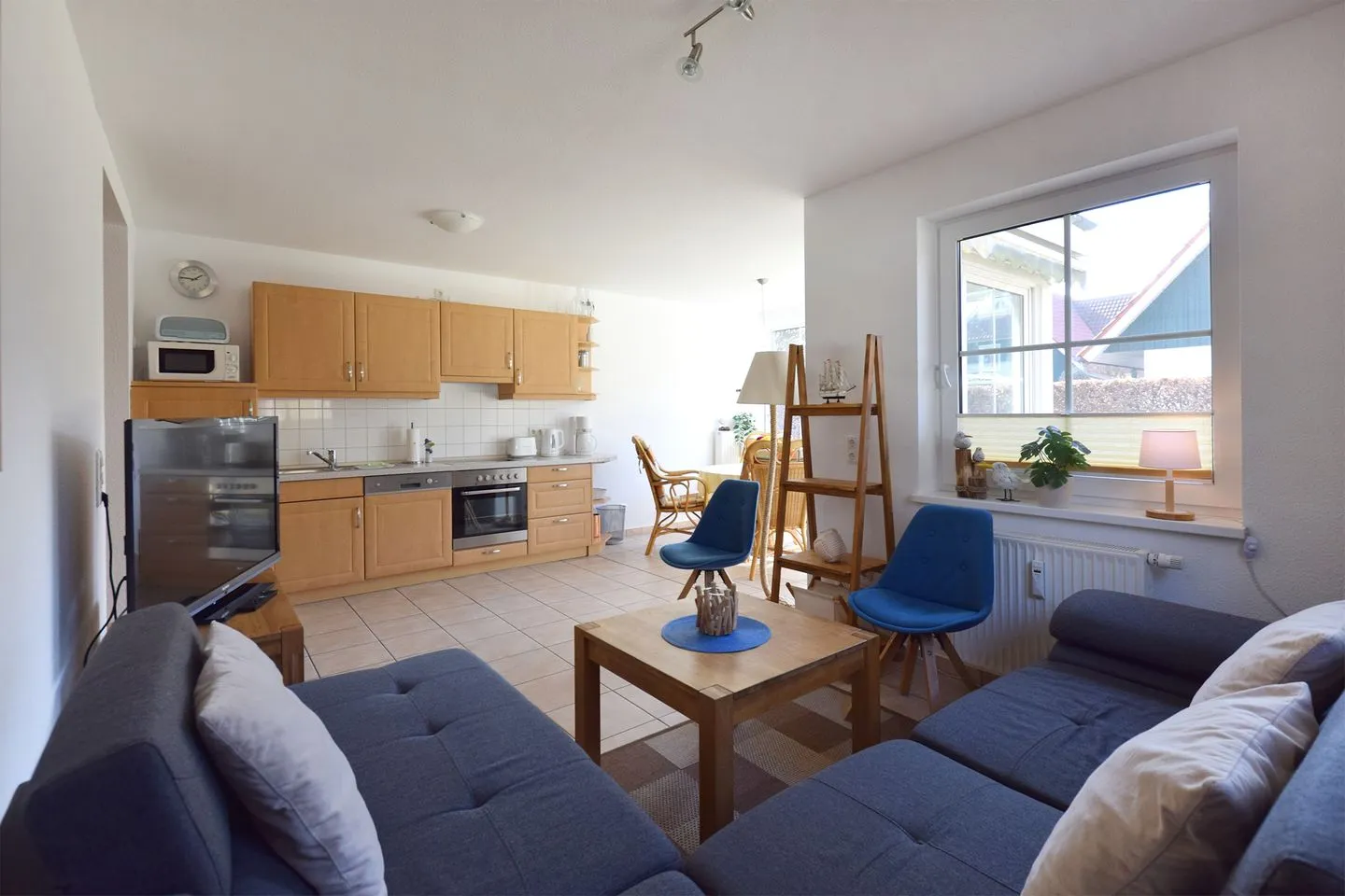 Diese gemütliche Ferienwohnung für bis zu 4 Personen bietet auf ca. 56 m² alles, was für einen entspannten Aufenthalt benötigt wird. Im Erdgeschoss finden Sie den Wohnbereich mit einer komfortablen Sitzgarnitur, einem Esstisch, einem Radio mit CD-Player und einem TV (SAT/Kabel). Die verglaste Veranda sorgt für viel Licht und eine angenehme Atmosphäre, während die Süd-West-Terrasse einen schönen Platz zum Entspannen im Freien bietet. Die moderne Einbauküche ist gut ausgestattet mit einem Herd, Backofen, Geschirrspüler, Mikrowelle, Kühlschrank mit Gefrierfach, Kaffeemaschine, Toaster und Wasserkocher – ideal für die Zubereitung eigener Mahlzeiten. Das Badezimmer ist mit einer Dusche, einem WC und einer Waschmaschine ausgestattet.