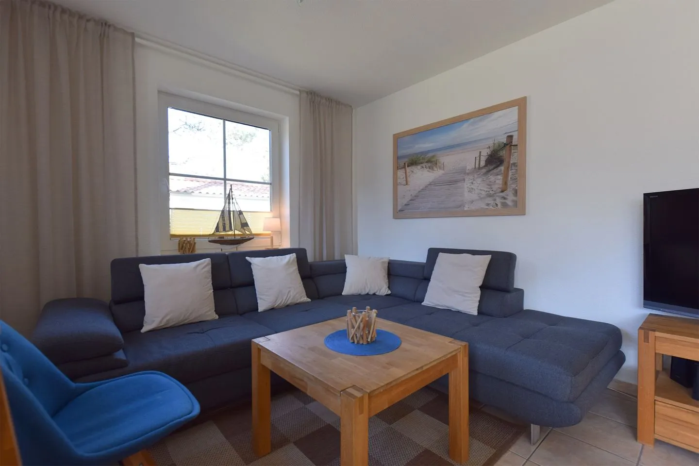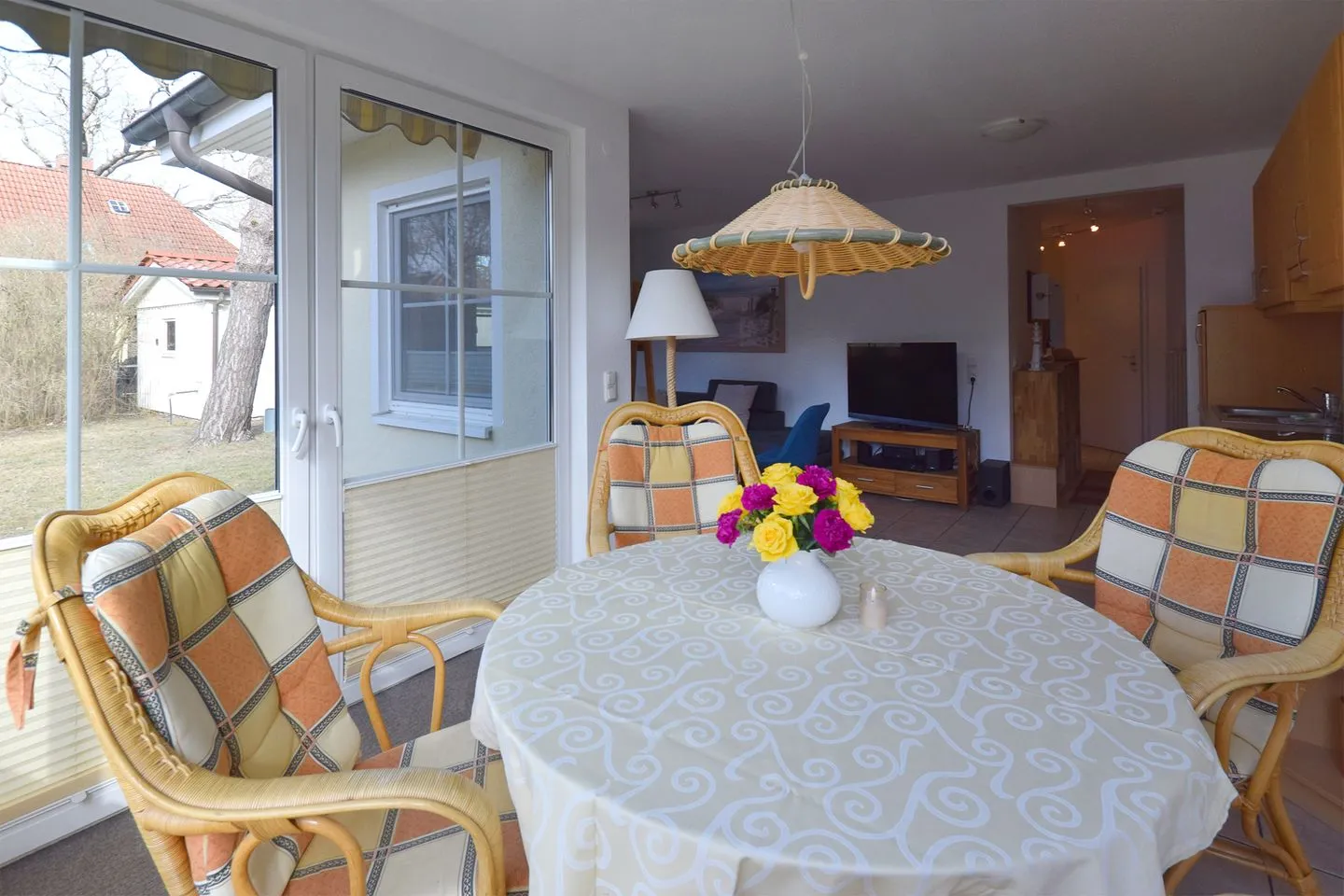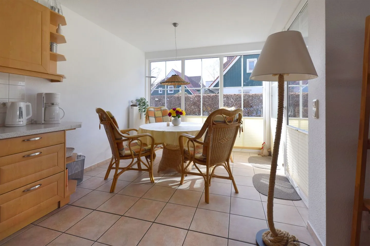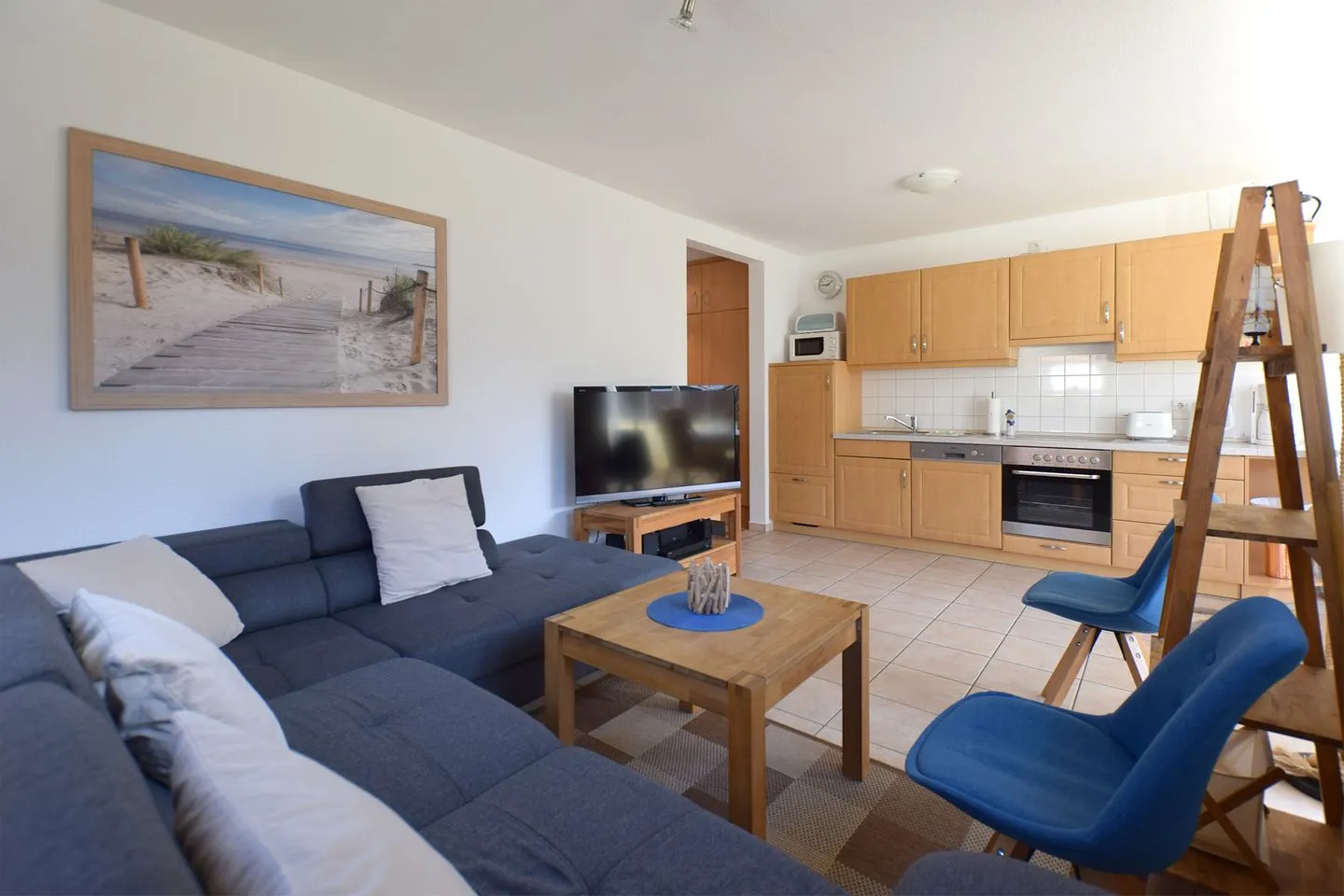 Diese gemütliche Ferienwohnung für bis zu 4 Personen bietet auf ca. 56 m² alles, was für einen entspannten Aufenthalt benötigt wird. Im Erdgeschoss finden Sie den Wohnbereich mit einer komfortablen Sitzgarnitur, einem Esstisch, einem Radio mit CD-Player und einem TV (SAT/Kabel). Die verglaste Veranda sorgt für viel Licht und eine angenehme Atmosphäre, während die Süd-West-Terrasse einen schönen Platz zum Entspannen im Freien bietet. Die moderne Einbauküche ist gut ausgestattet mit einem Herd, Backofen, Geschirrspüler, Mikrowelle, Kühlschrank mit Gefrierfach, Kaffeemaschine, Toaster und Wasserkocher – ideal für die Zubereitung eigener Mahlzeiten. Das Badezimmer ist mit einer Dusche, einem WC und einer Waschmaschine ausgestattet.