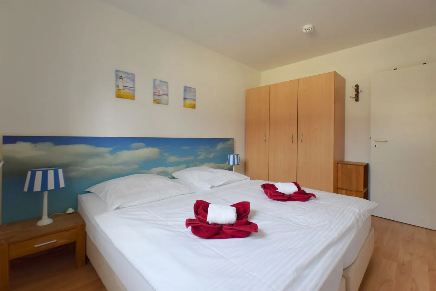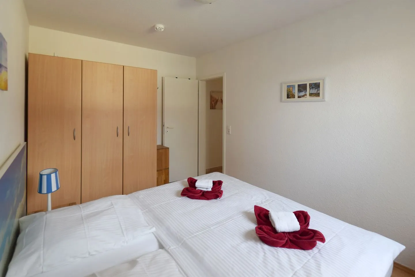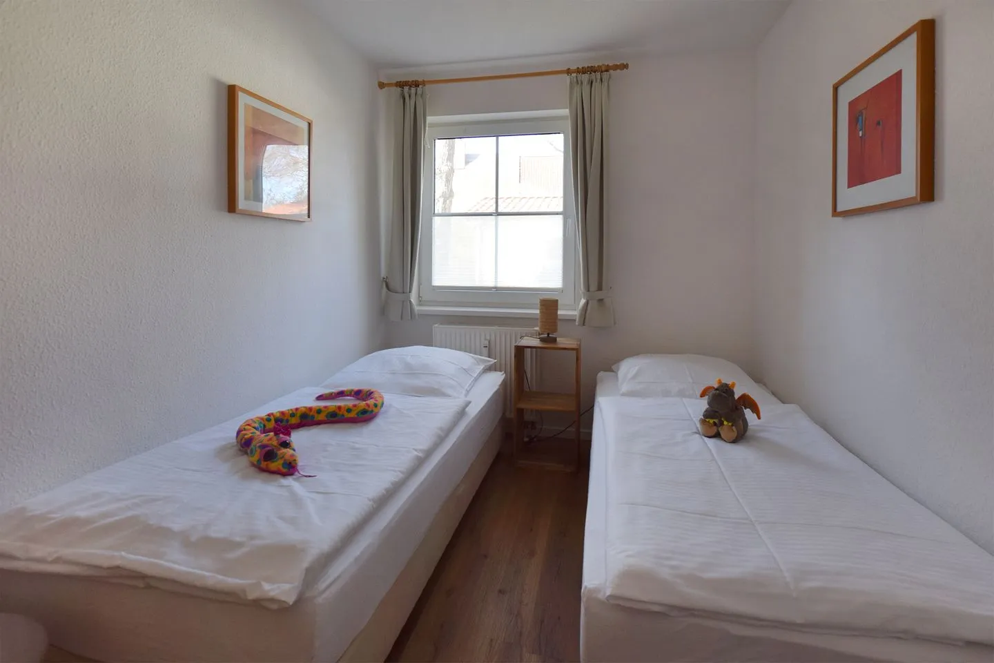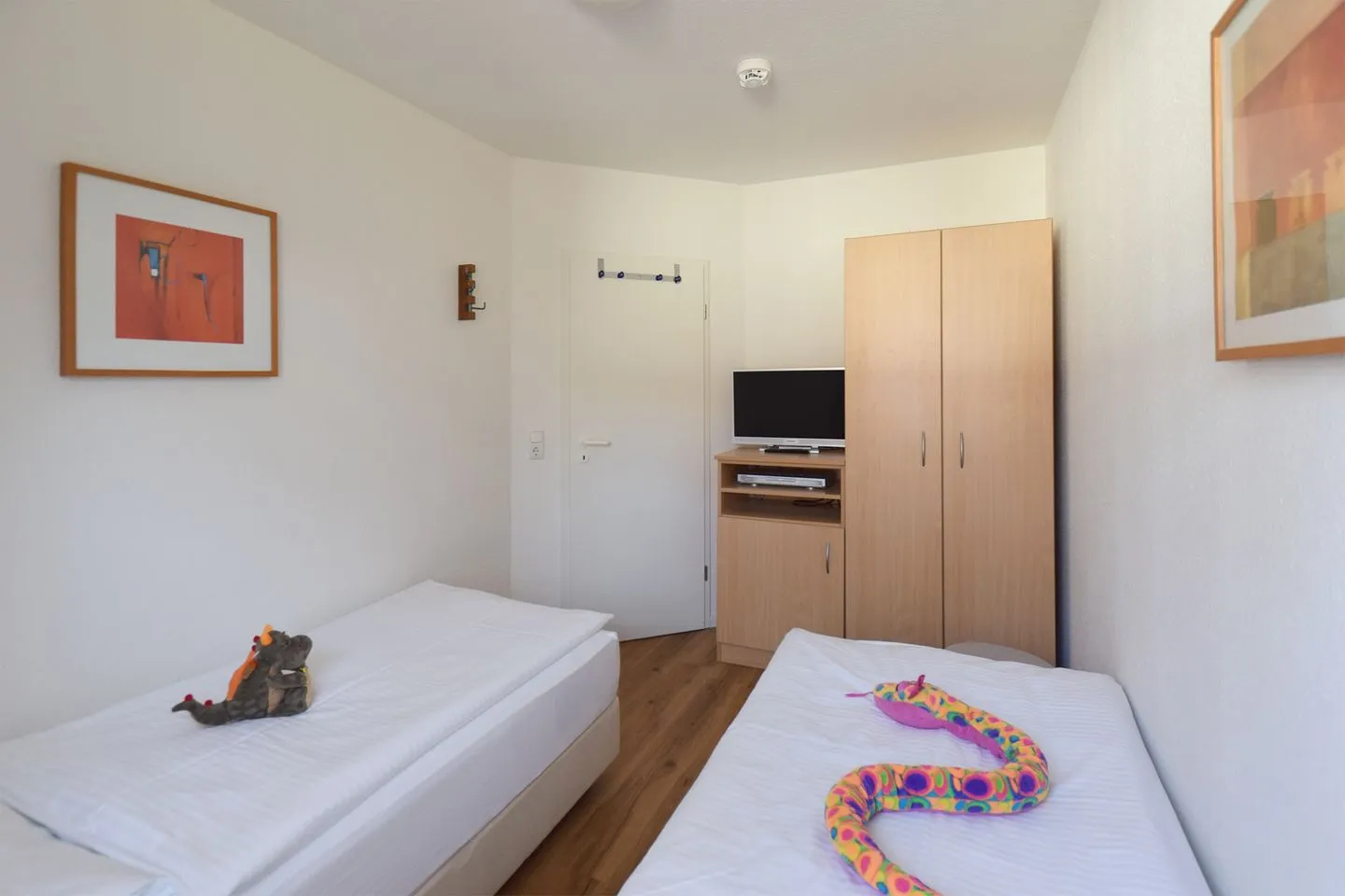 Die Ferienwohnung bietet zwei Schlafzimmer: Eines mit einem Doppelbett (180 x 200 cm) und ein weiteres mit zwei Einzelbetten (90 x 200 cm), ideal für Familien oder Freunde. WLAN steht Ihnen während des gesamten Aufenthalts kostenfrei zur Verfügung. Ein Parkplatz direkt vor der Wohnung sorgt für bequemen Zugang. Zur gemeinschaftlichen Nutzung gibt es einen Fahrradschuppen, in dem Sie Ihre Räder sicher abstellen können. Die Ferienwohnung ist ideal für kleine Gruppen oder Familien, die eine ruhige und gut ausgestattete Unterkunft in schöner Lage suchen.